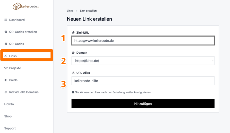 - Hinzufügen (für URL) sofern noch keine Links vorhanden sind