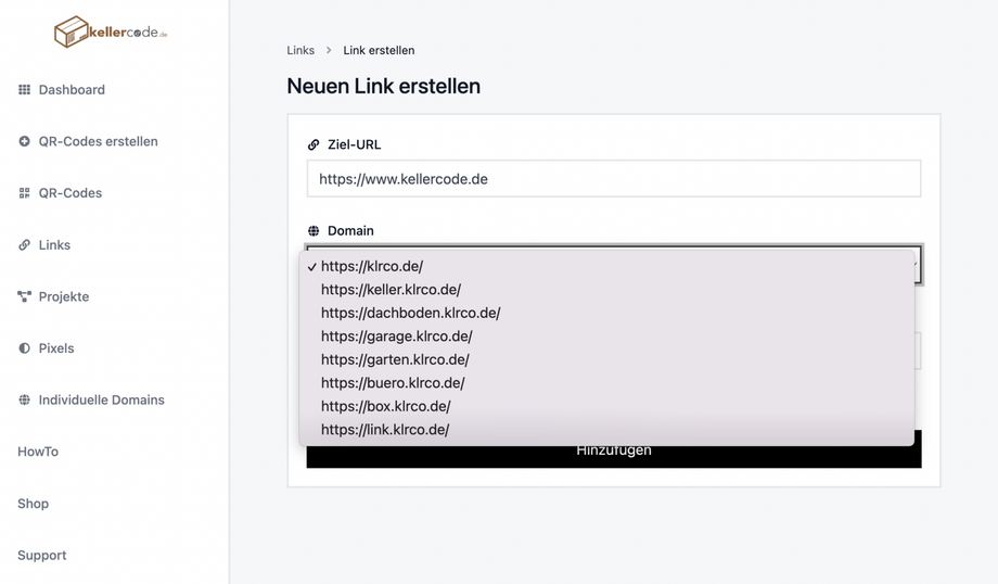 Nach dem erfolgreichen Login können Sie Links erstellen. Im Generator klicken Sie bitte auf "Erstellen"