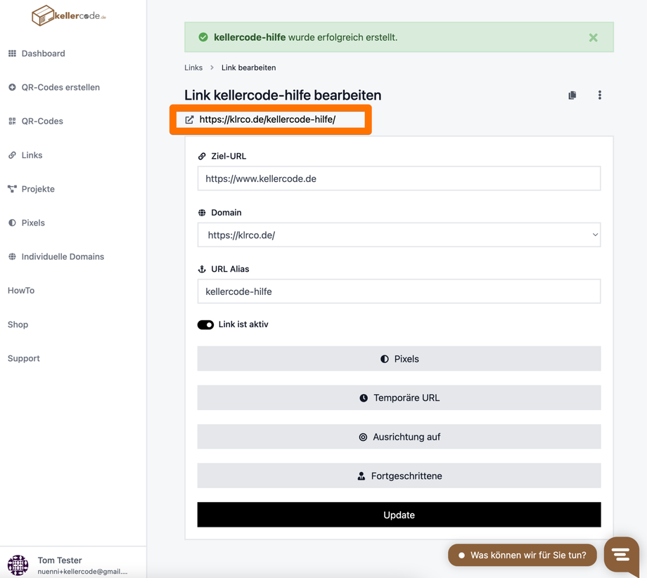 In unserem Beispiel leitet nun https://klrco.de/kellercode-hilfe/ automatisch auf https://www.kellercode.de weiter