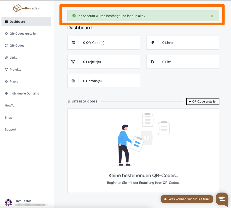 Nachdem aktivieren Ihres Accounts gelangen Sie automatisch in Ihr Dashboard.