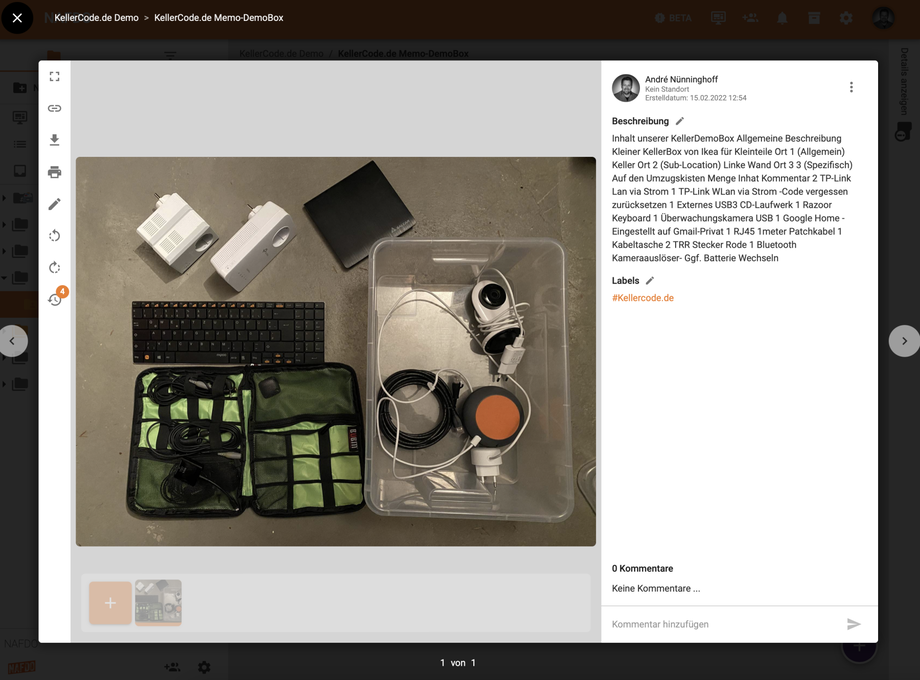 Wie in unserem HowTo: Kellercode beschrieben können entweder nur ein Photo oder mehr Informationen zum Inhalt der Box notiert werden.